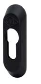 Escudo de seguridad pasante con contraescudo, 1 escudo de zamak, capucha de nylon para contraescudo y dos tornillos pasantes