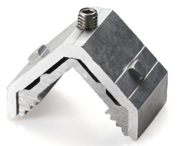 Escuadra de extrusión compuesta por dos partes de aluminio acopladas entre sí aportando robustez.